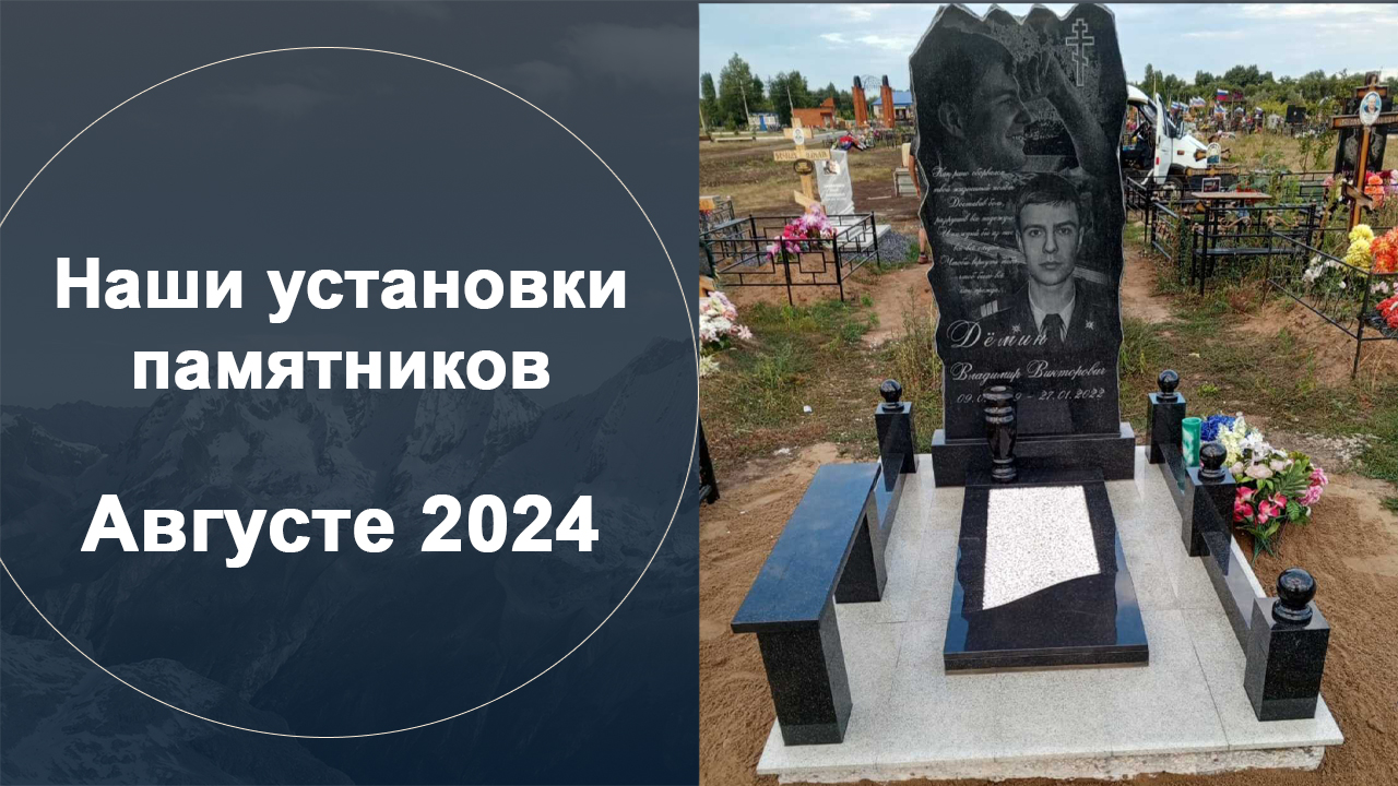 Фото 55 установленных памятников из гранита и мрамора в августе 2024 года на кладбищах Саратова, Энгельса и Саратовской области.