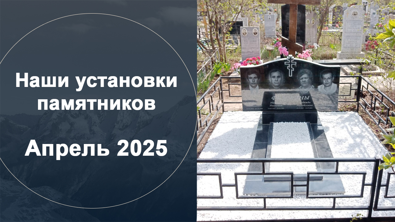 Фото 12 установленных памятников из гранита и мрамора в апреле 2025 года на кладбищах Саратова, Энгельса и Саратовской области.