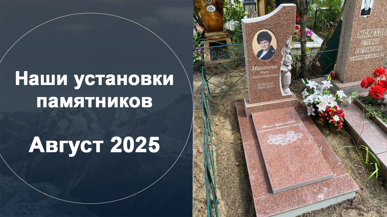 Фото 59 установленных памятников из гранита и мрамора в августе 2025 года на кладбищах Саратова, Энгельса и Саратовской области.