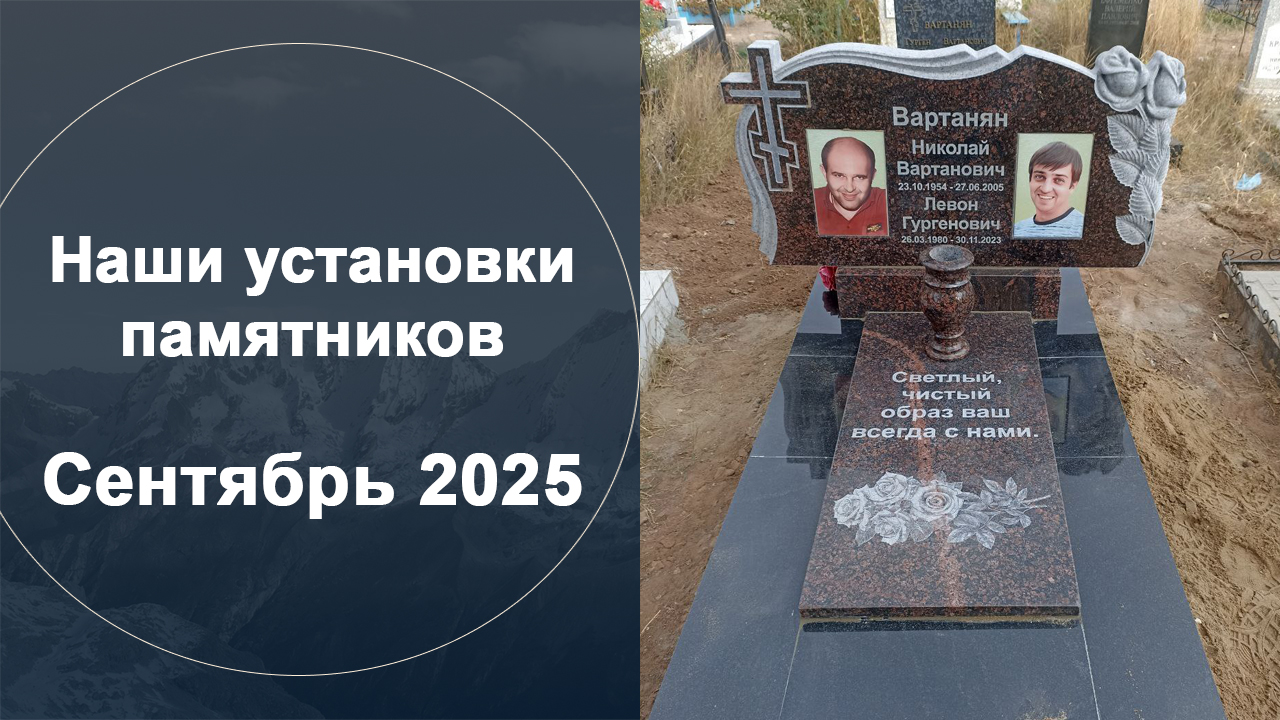 Фото 46 установленных памятников из гранита и мрамора в сентябре 2025 года на кладбищах Саратова, Энгельса и Саратовской области.
