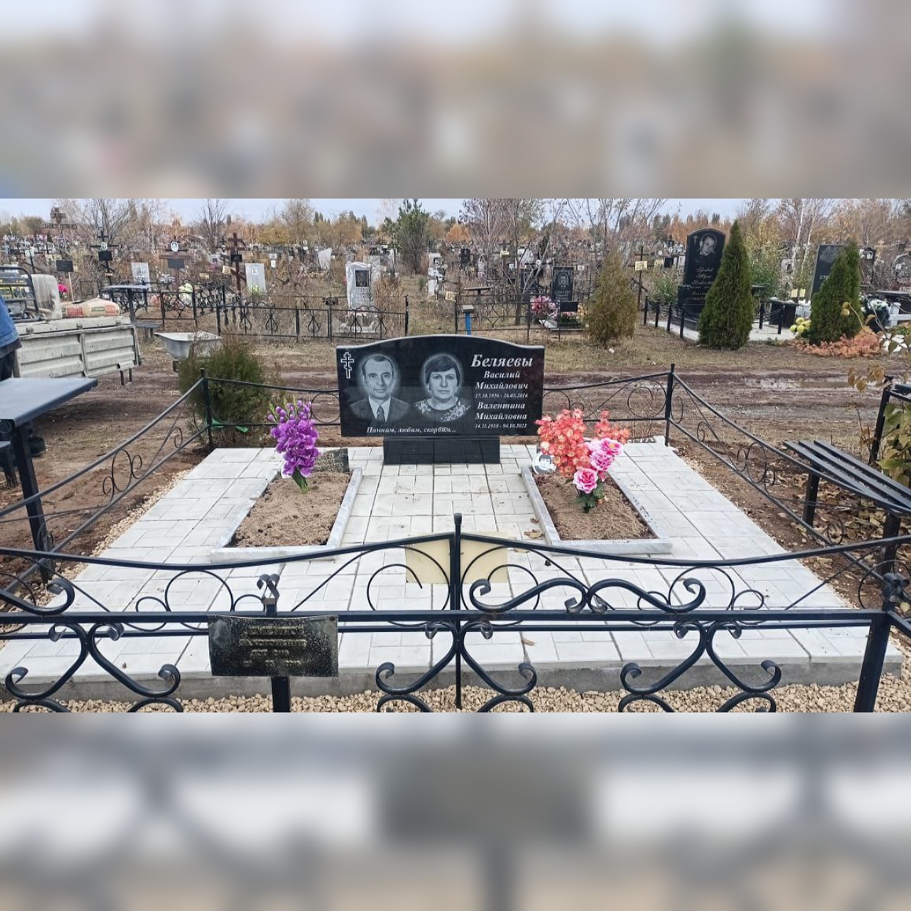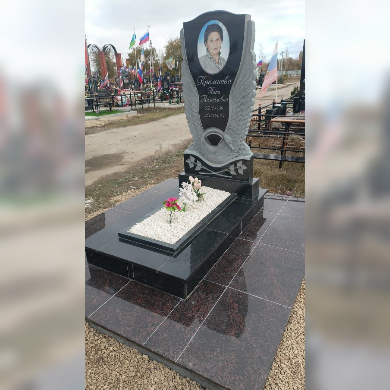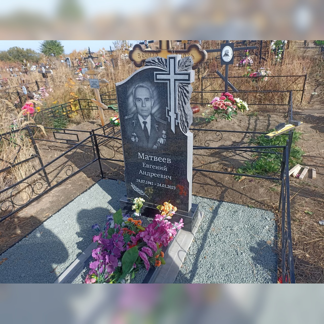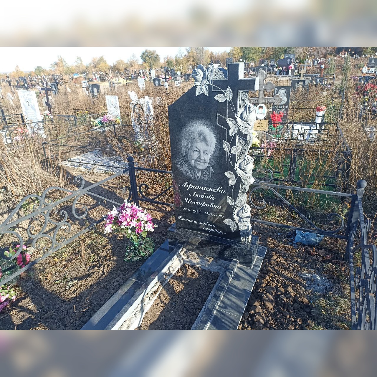 Фото 42 установленных памятников из гранита и мрамора в октябре 2025 года на кладбищах Саратова, Энгельса и Саратовской области.