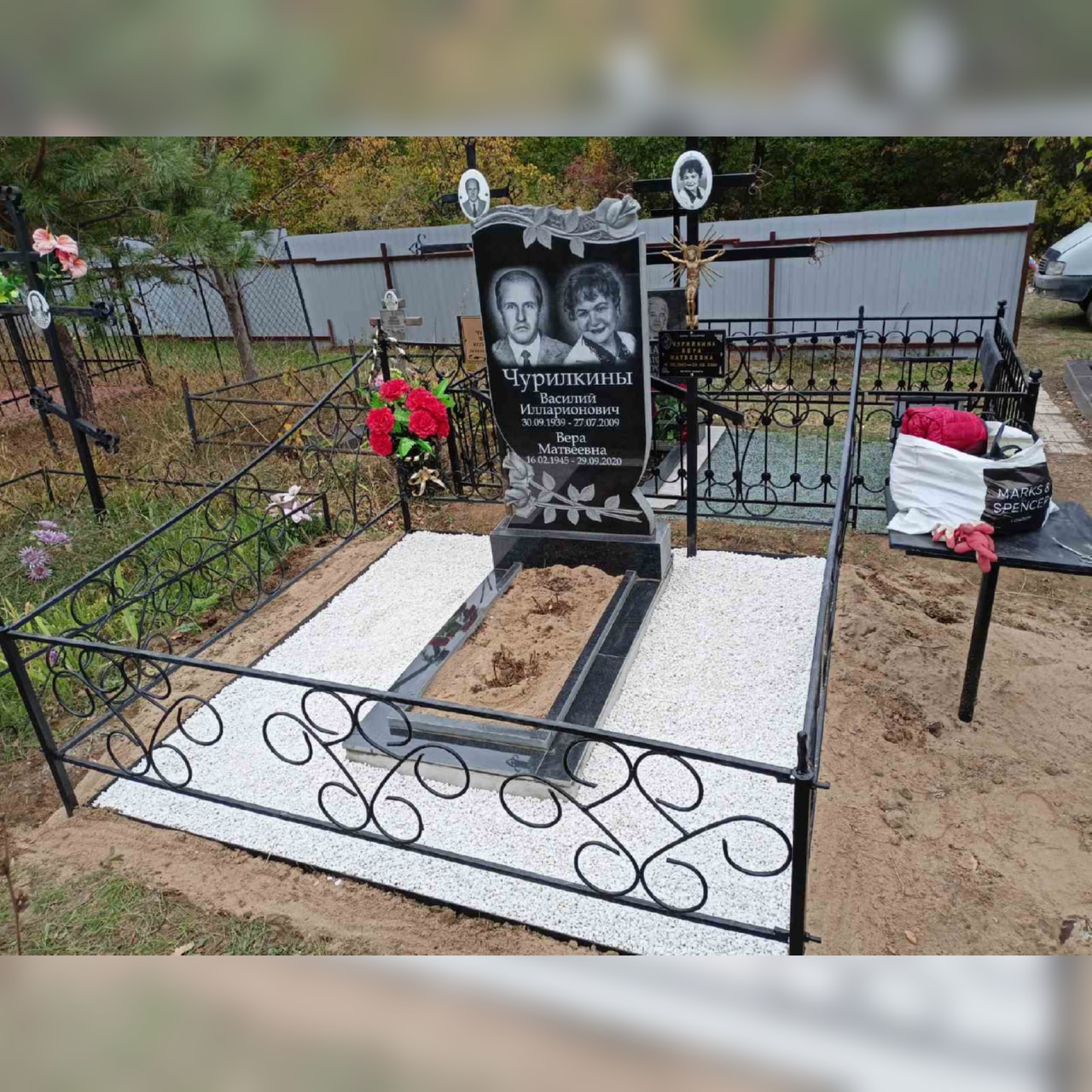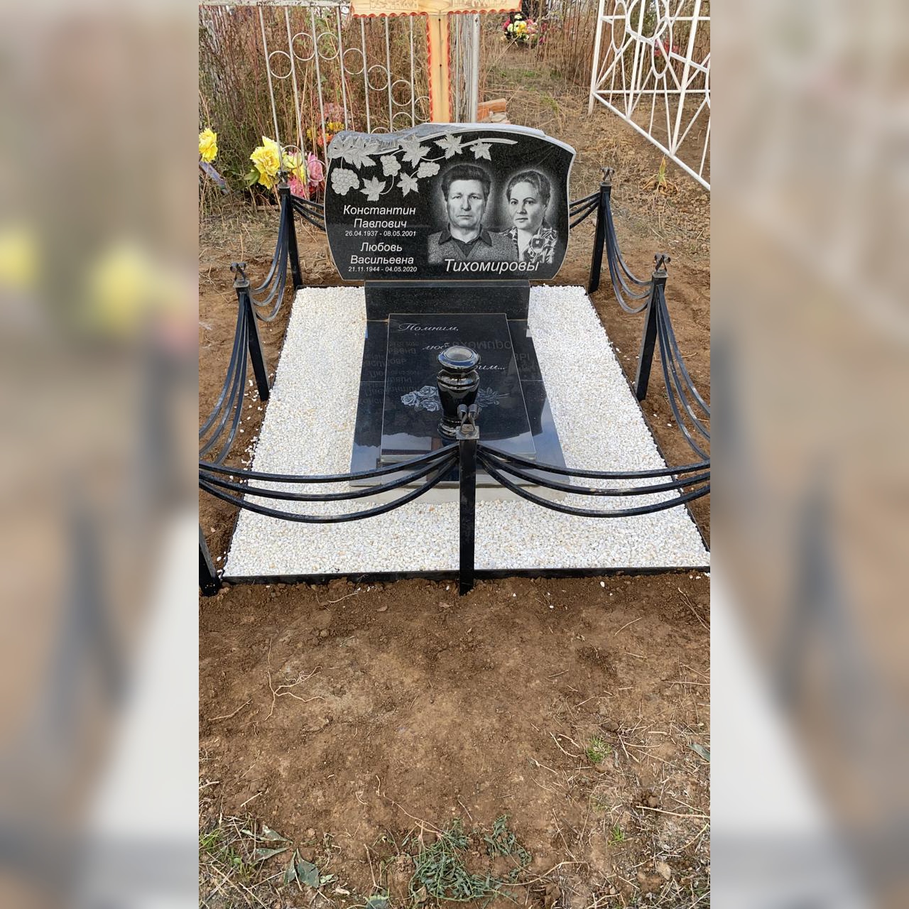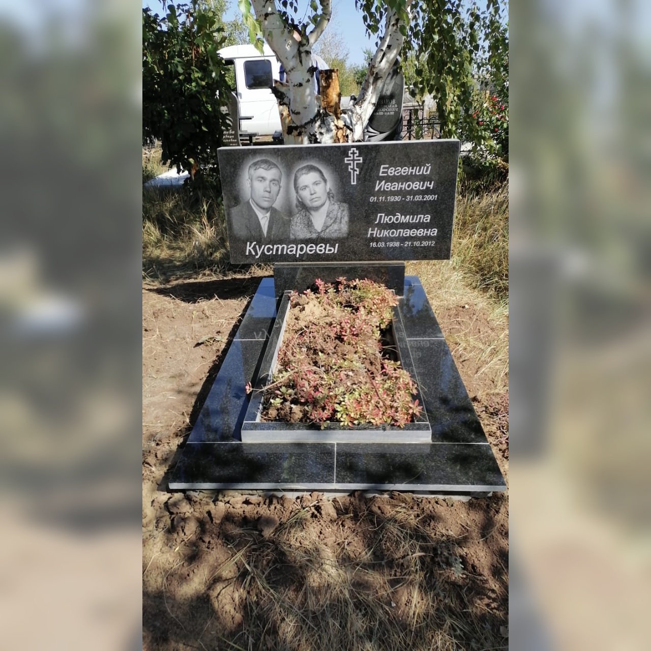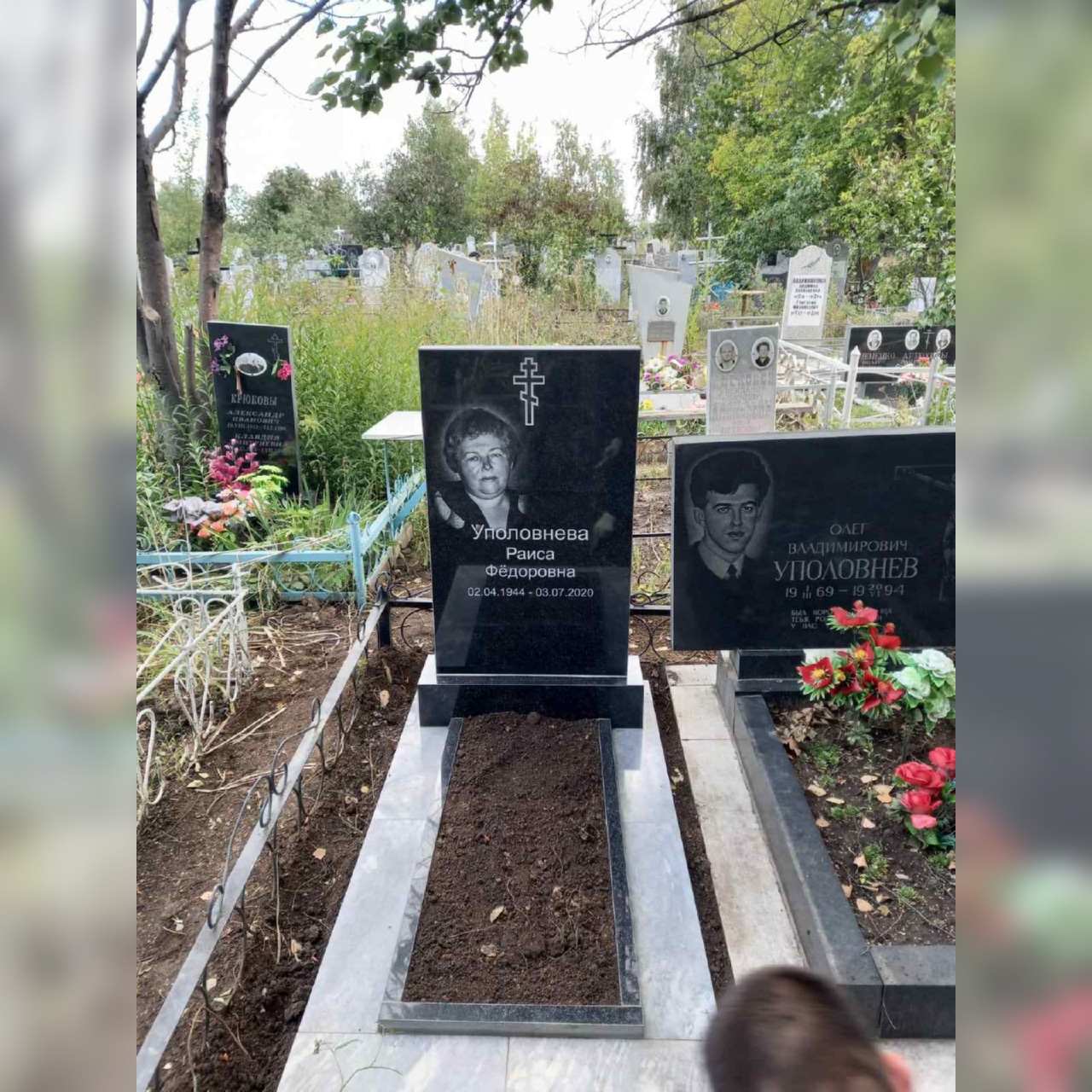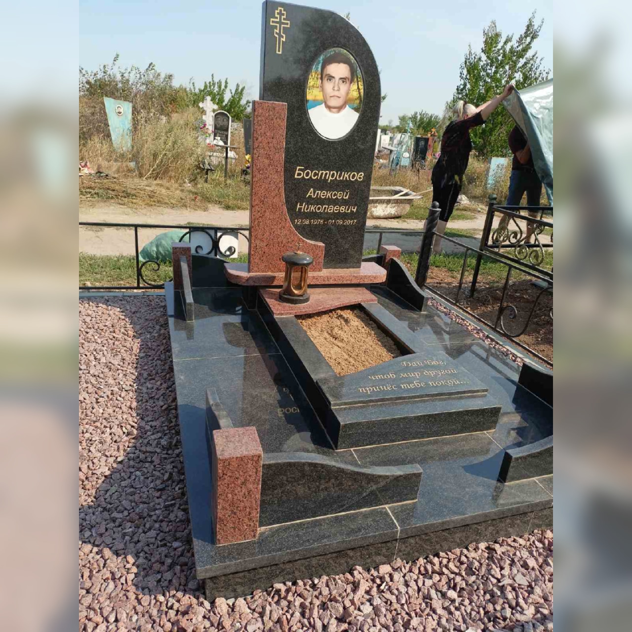 Фотографии 41 памятника на могилу, установленных в сентябре 2021 года. Фотография 12 - пример комбинированного памятника из красного гранита и черного гранита.