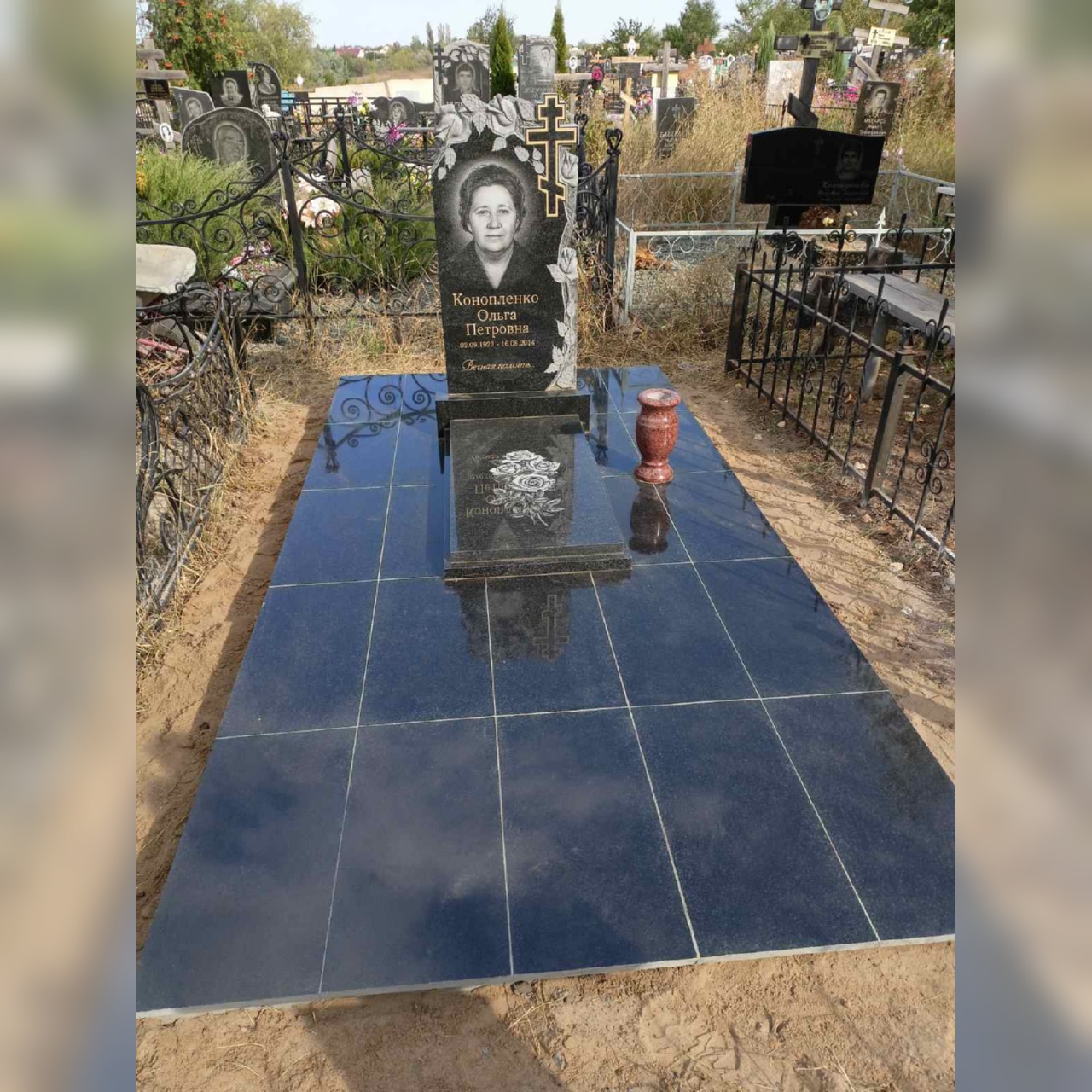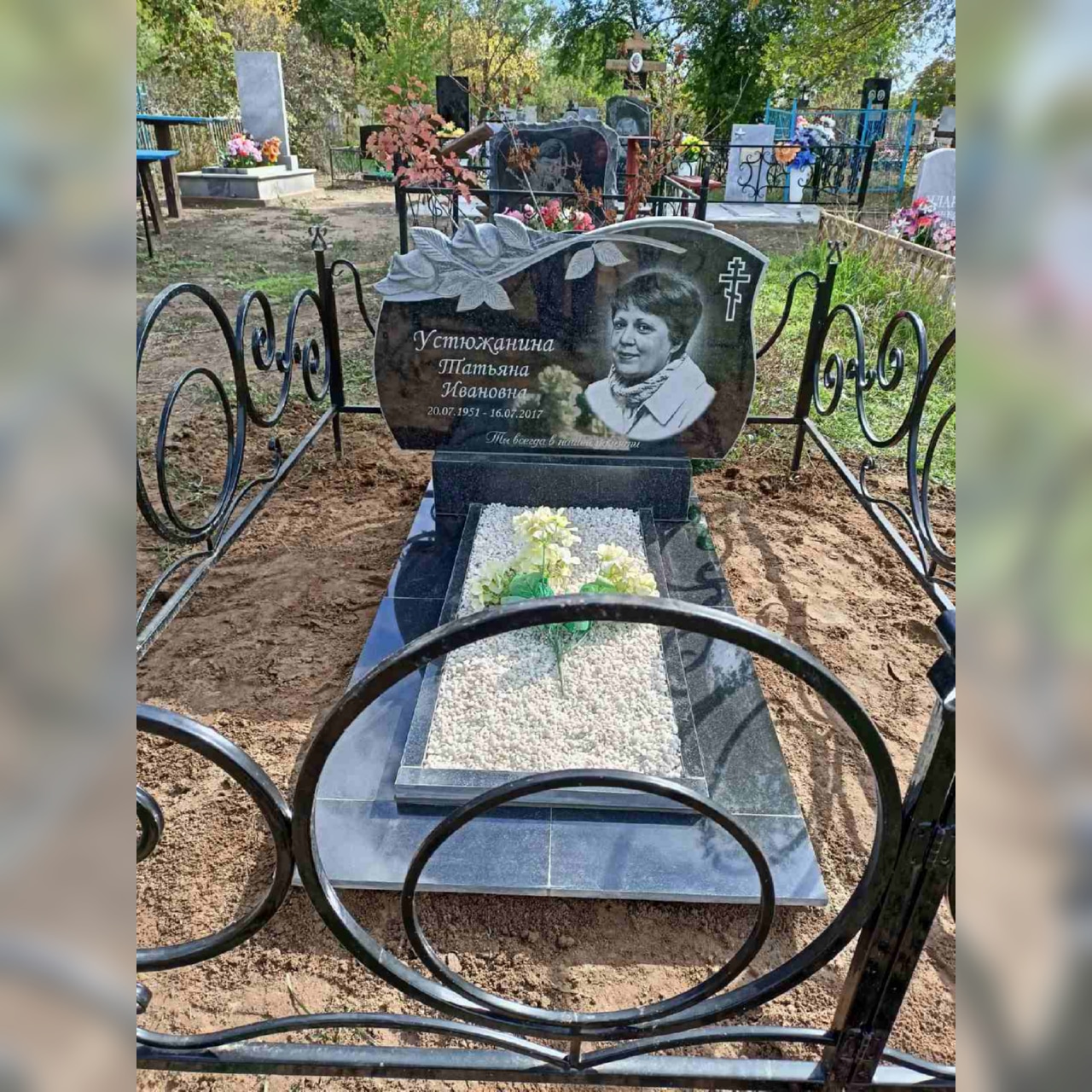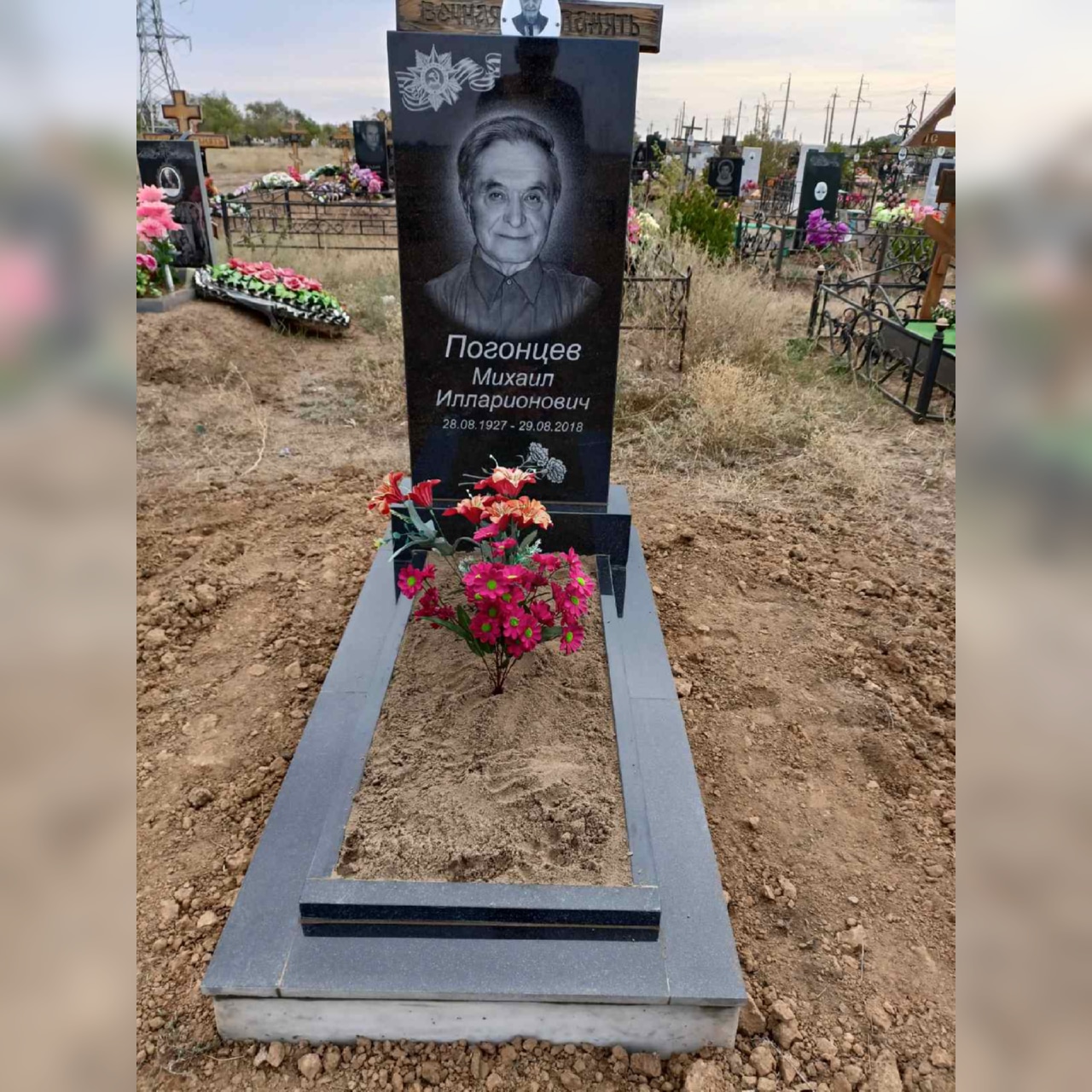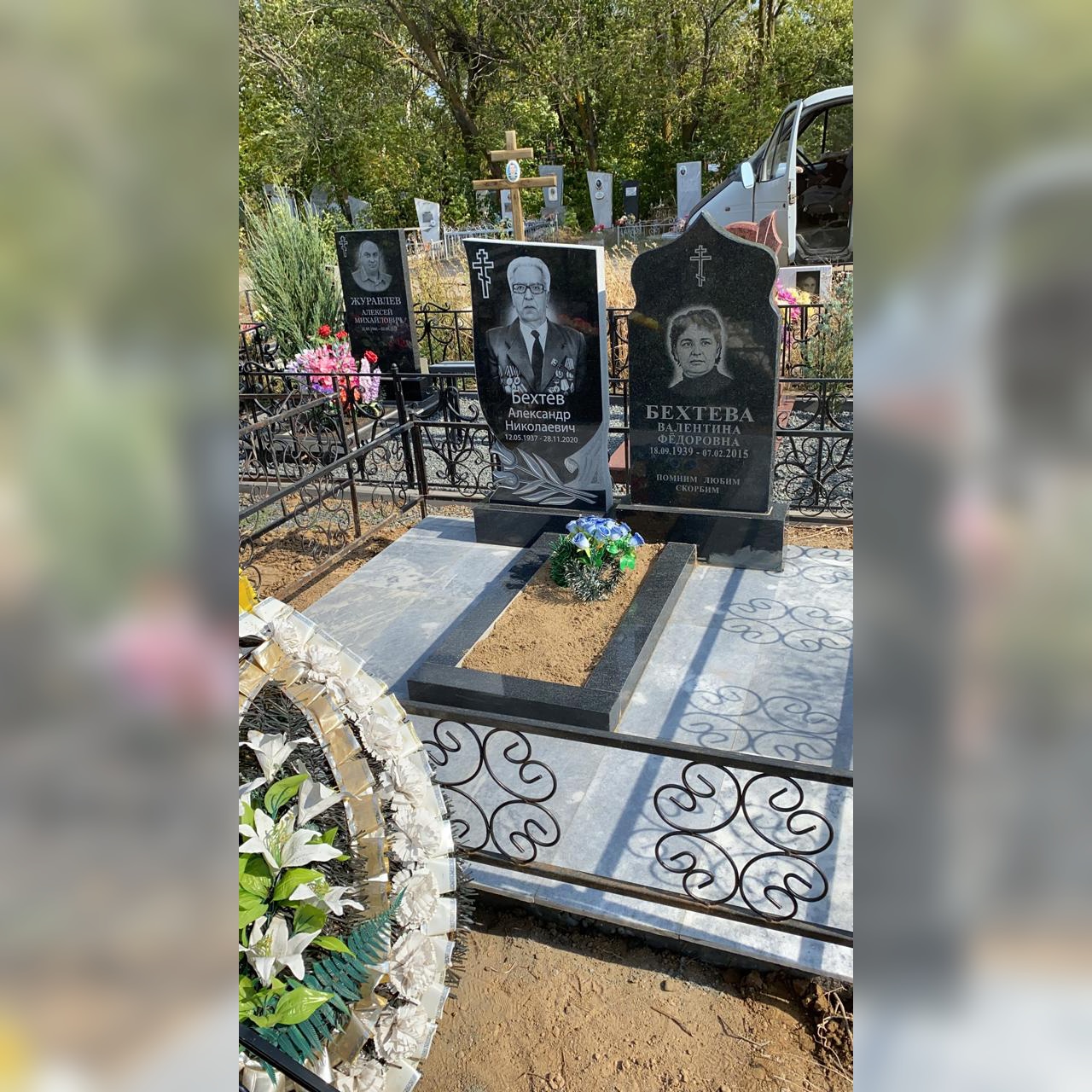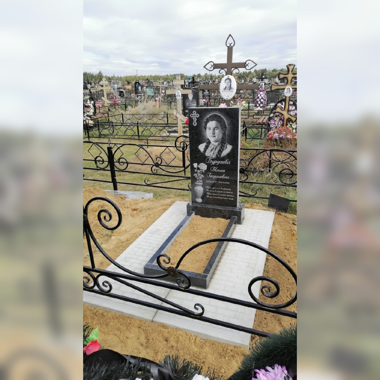 Фотографии 41 памятника на могилу, установленных в сентябре 2021 года. Фотография 12 - пример комбинированного памятника из красного гранита и черного гранита.