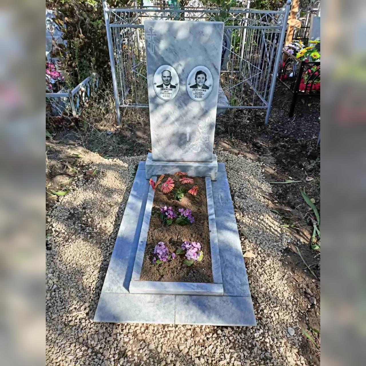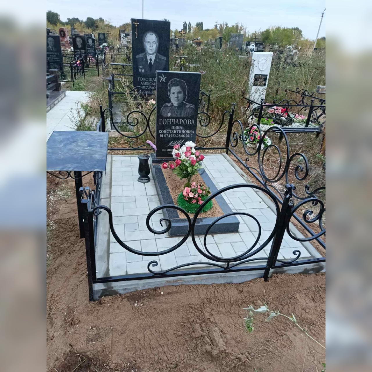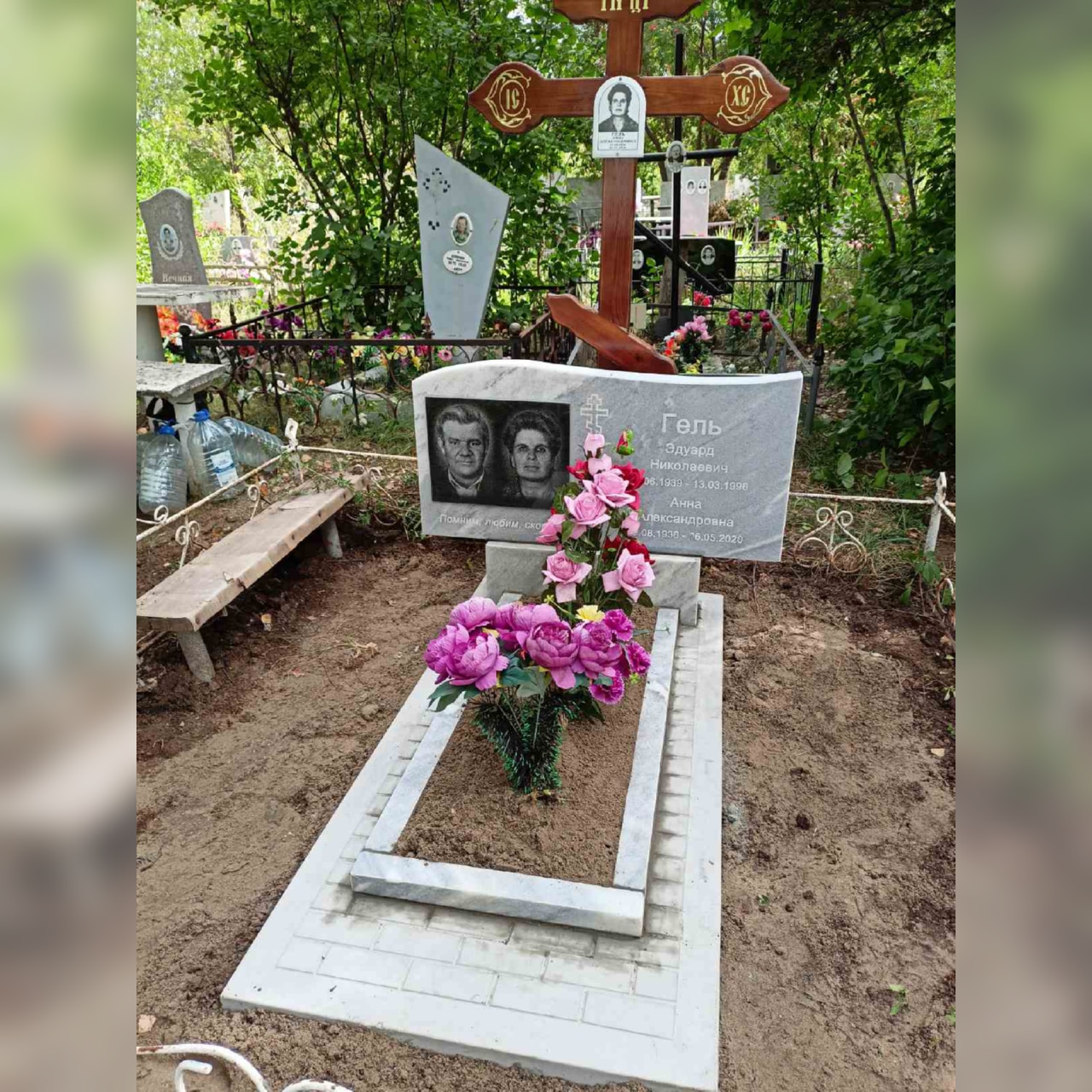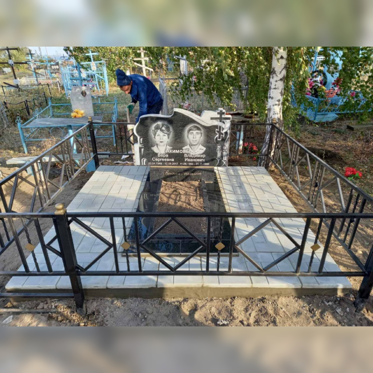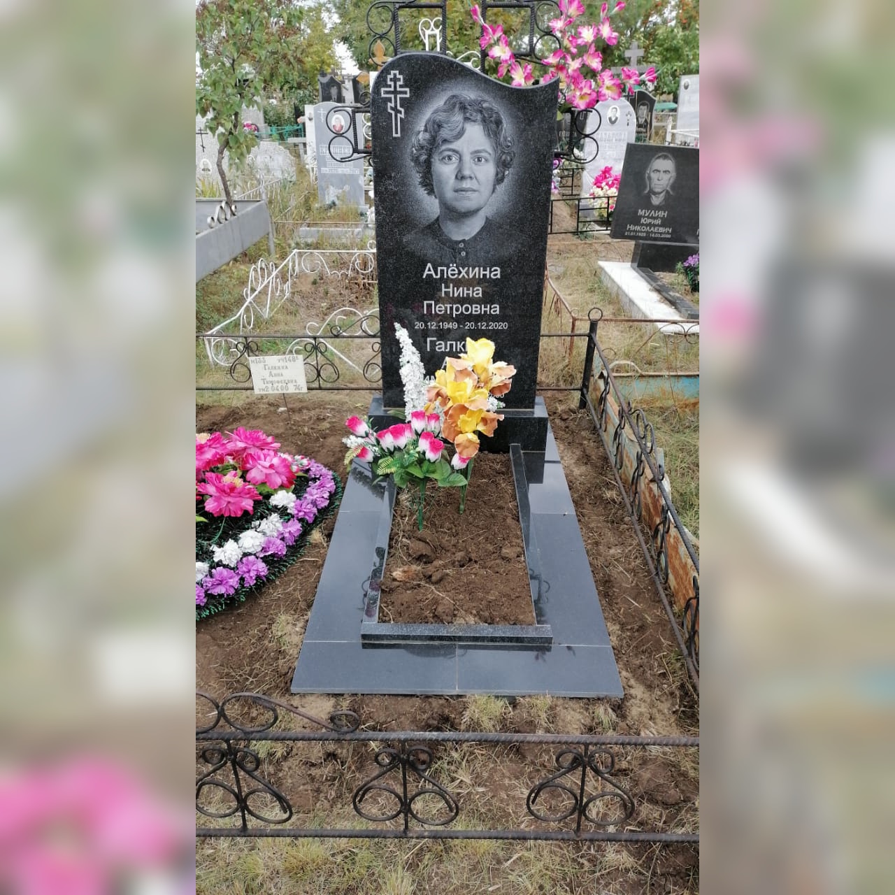Фотографии 41 памятника на могилу, установленных в сентябре 2021 года. Фотография 12 - пример комбинированного памятника из красного гранита и черного гранита.