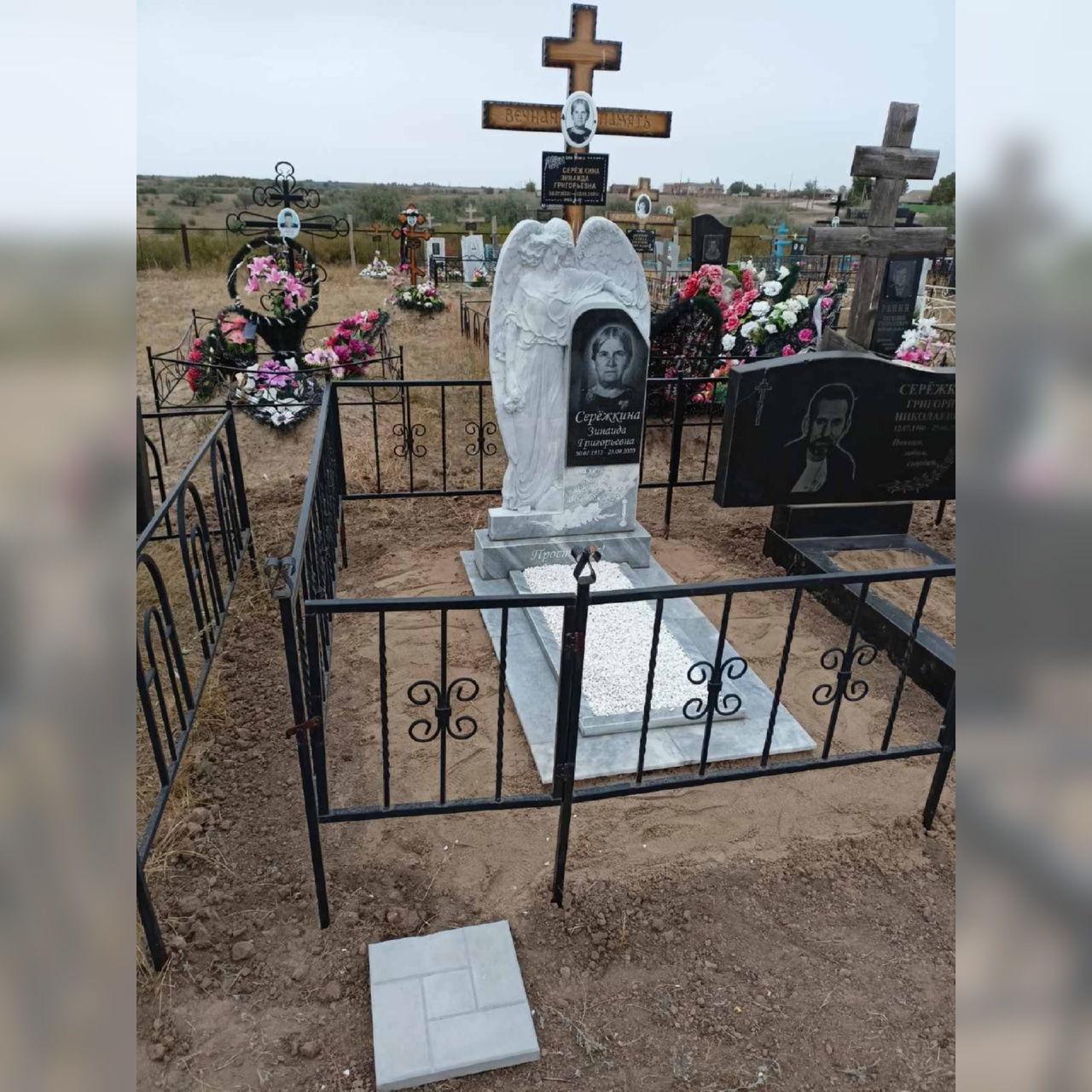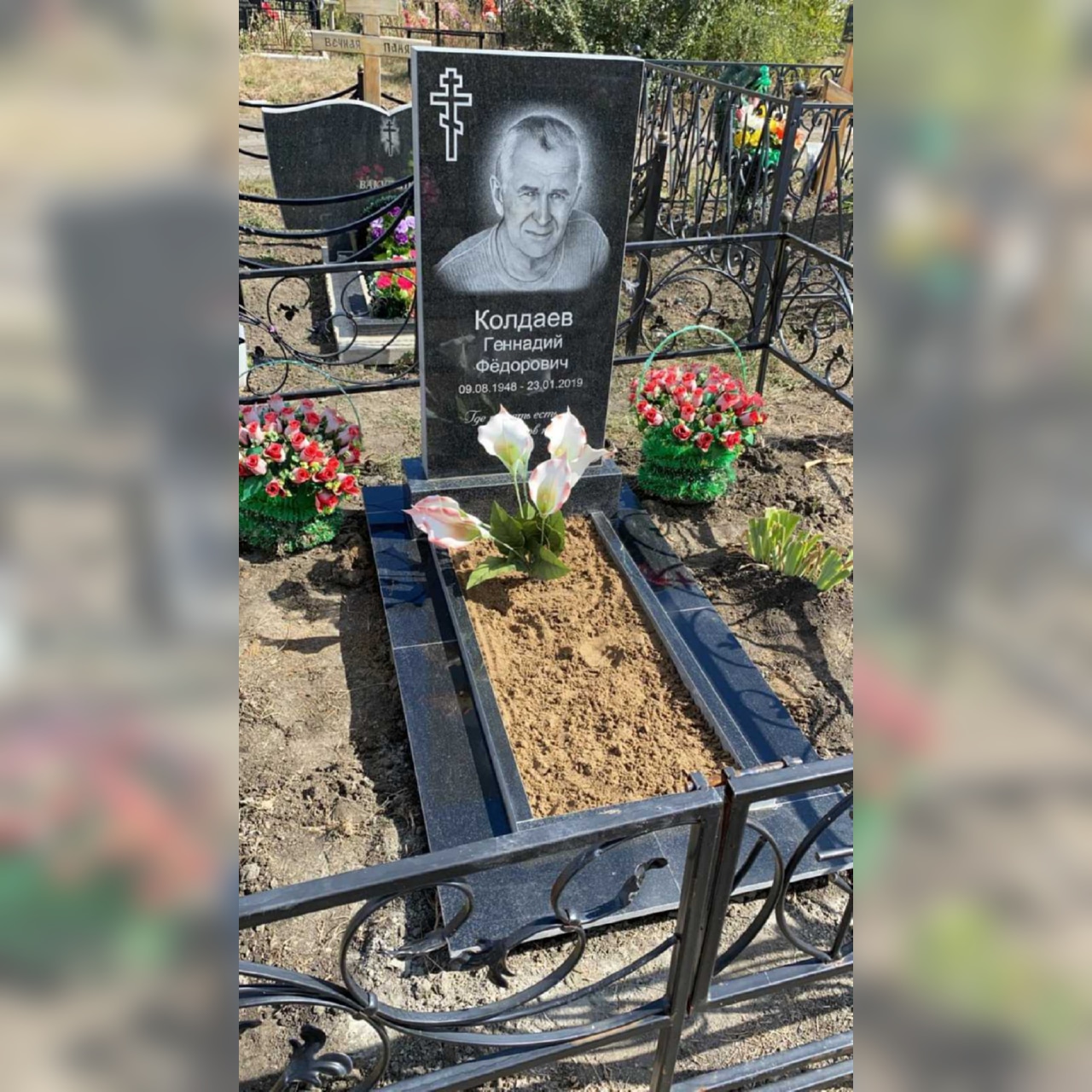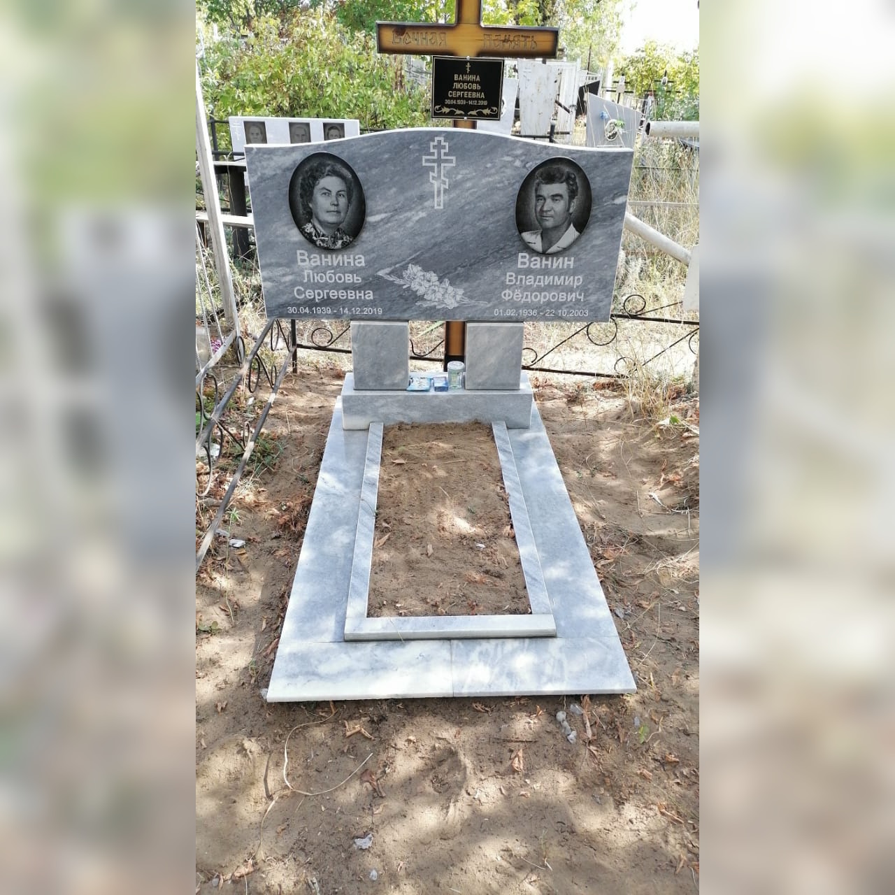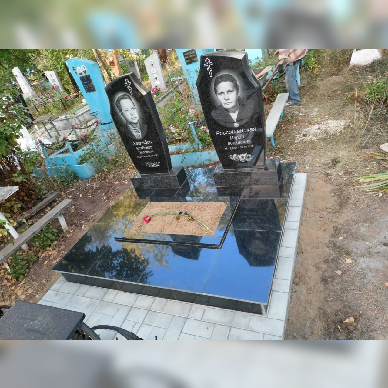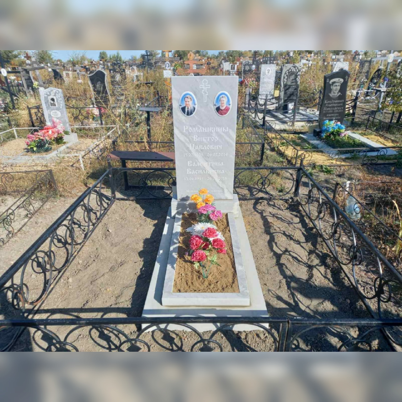 Фотографии 41 памятника на могилу, установленных в сентябре 2021 года. Фотография 12 - пример комбинированного памятника из красного гранита и черного гранита.