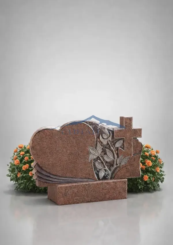 Гранитный памятник с крестом и цветочным оформлением выполнен из прочного красного гранита с выразительной природной текстурой. Оригинальная форма стелы с плавными линиями придает композиции мягкость и гармонию. Декоративная резьба с изображением цветов и креста символизирует светлую память, любовь и духовную защиту. Художественная проработка деталей создает объемный эффект и делает памятник визуально выразительным. Контраст фактур подчеркивает глубину рисунка и аккуратность исполнения. Возможна гравировка, которая позволяет персонализировать памятник именами, датами или изображениями, создавая индивидуальный мемориал.