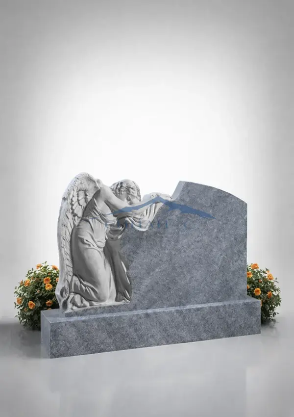 Мраморный памятник "Присный" с ангелом выполнен из светлого натурального мрамора и отличается выразительной горизонтальной композицией. Скульптура скорбящего ангела, склонившего голову на стелу, символизирует вечный покой, защиту души и светлую память о близком человеке. Детальная проработка крыльев, фигуры и складок одежды придаёт памятнику глубину и эмоциональную выразительность. Плавная форма стелы гармонично дополняет композицию, создавая спокойный и благородный образ. Поверхность памятника подходит для нанесения гравировки с именами и датами, позволяя создать индивидуальный мемориал. Такой памятник станет достойным символом уважения и памяти на долгие годы.