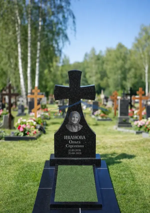 Гранитный памятник «Крест 25» изготовлен из прочного черного гранита высокого качества, обеспечивающего долговечность, стойкость к атмосферным воздействиям и благородный визуальный эффект. Композиция выполнена в виде выразительного креста с мягкими, округлыми формами, которые символизируют веру, вечную память и духовную уверенность. Плавные контуры стелы создают чувство спокойствия и торжественности, подчёркивая уважение к усопшему. Отшлифованная поверхность служит идеальной основой для нанесения портрета, имён, дат и памятных надписей, а сбалансированный дизайн делает памятник универсальным для установки на любом захоронении. Возможна персональная гравировка с именами, датами или памятными символами, что делает изделие уникальным отражением памяти и любви к близкому человеку.