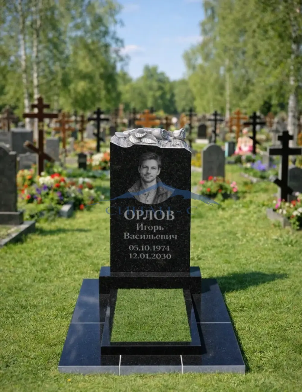 В комплект входит гранитная стела и прочная тумба, обеспечивающая устойчивость конструкции. Памятник подходит как для одиночного, так и для семейного захоронения. Лаконичный дизайн гармонично сочетается с различными вариантами благоустройства — плиткой, цветником или оградой. Индивидуальная гравировка позволяет создать достойный мемориал, который будет долгие годы сохранять память о дорогом человеке.