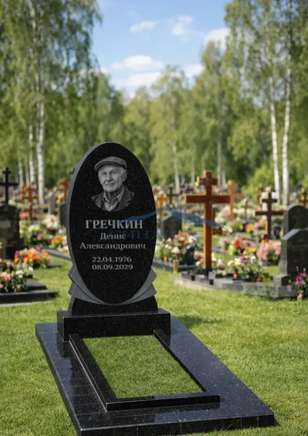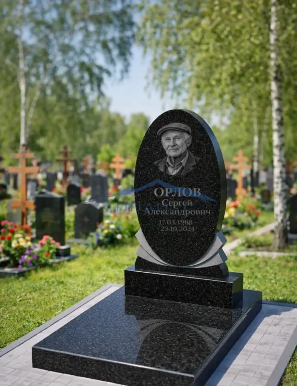 Гранитный памятник «Благоденствие» выполнен из высококачественного прочного черного гранита, обеспечивающего исключительную стойкость к атмосферным воздействиям и долговечность на долгие годы. Элегантная овальная форма стелы, подчеркнутая плавными геометрическими линиями основания, символизирует гармонию, спокойствие и светлую память о близком человеке. Сдержанный, но выразительный дизайн сочетает в себе благородство материала и эстетическую простоту, что делает памятник универсальным для любых захоронений. Отшлифованная поверхность служит превосходной основой для нанесения портрета, имён, дат и памятных надписей, подчёркивая торжественность образа и уважение к усопшему. Возможна индивидуальная гравировка с именами, датами, эпитафиями и символами, что делает изделие уникальным отражением любви, памяти и благодарности родному человеку.