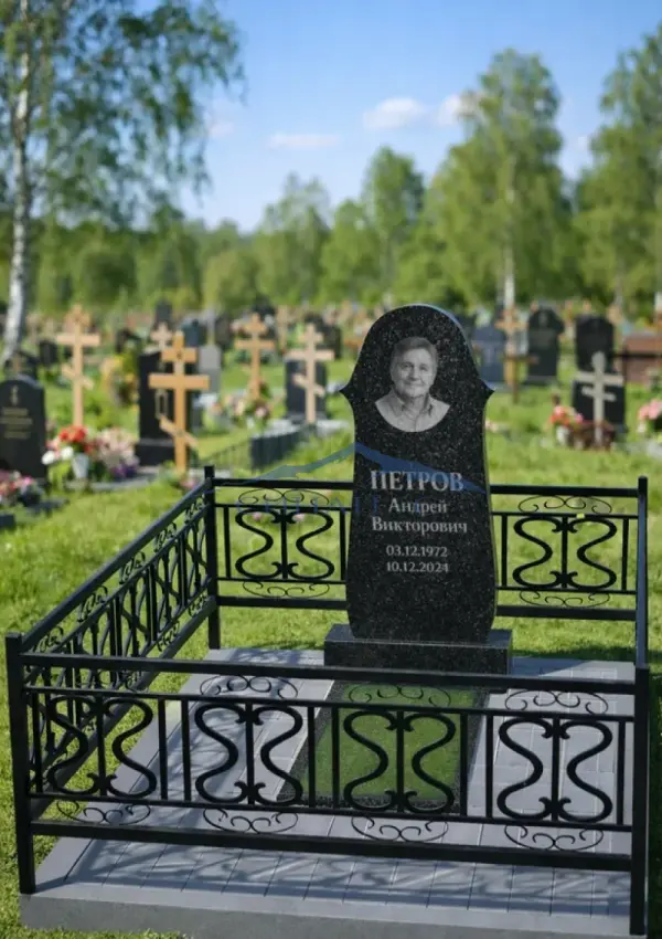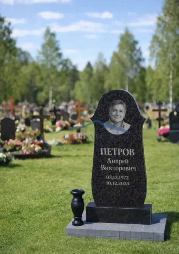 Гранитный памятник «Часовня» выполнен из высококачественного прочного черного гранита, обеспечивающего долговечность и устойчивость к атмосферным воздействиям. Стела имеет классическую, изящно округлённую форму, напоминающую архитектурные элементы часовни, что придаёт монументу торжественный и спокойный вид. Полированная поверхность служит благородным фоном для надписей и гравировок, а четкие контуры формы подчеркивают эстетическую сдержанность изделия. Эта модель подходит для размещения как на одиночных, так и семейных могильных участках. Возможна индивидуальная гравировка с именем, датами, эпитафиями или памятными символами, что делает памятник персональным выражением памяти и уважения к усопшему.