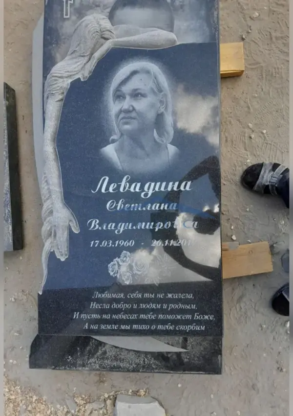 Гранитный памятник «Минута молчания» выполнен из прочного высококачественного черного гранита, обеспечивающего долговечность, устойчивость к атмосферным воздействиям и благородный визуальный вид на долгие годы. Выразительная композиция памятника включает художественно выполненную фигуру скорбящей женщины, опирающейся на стелу, что символизирует глубокую печаль, утрату и светлую память о близком человеке. Контраст между отполированной плоской поверхностью и детализированной резьбой фигуры придаёт мемориалу эмоциональную глубину и художественную выразительность. Такая форма памятника отражает тонкие чувства уважения, любви и памяти, делая его особенно трогательным выбором для семьи. Отшлифованная гранитная поверхность служит прекрасной основой для нанесения портрета, имён, дат и памятных надписей, подчёркивая индивидуальность изделия. Памятник прекрасно смотрится как на одиночных, так и семейных захоронениях. Возможна индивидуальная гравировка с именами, датами, эпитафиями и символами, что делает изделие уникальным отражением памяти и глубоких чувств к ушедшему.