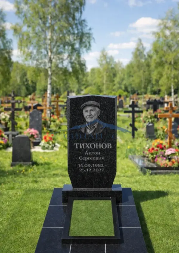 Гранитный памятник ГР-186 выполнен из чёрного гранита и отличается строгим и лаконичным дизайном. Вертикальная стела имеет аккуратную геометрическую форму с лёгким сужением в нижней части и ровными гранями, что придаёт памятнику современный и аккуратный внешний вид. Полированная поверхность камня подчёркивает природную текстуру гранита и идеально подходит для нанесения гравировки портрета, фамилии, имени, дат жизни и памятной надписи. Купить гранитный памятник ГР-186 можно в Саратове и Энгельсе с изготовлением и установкой.