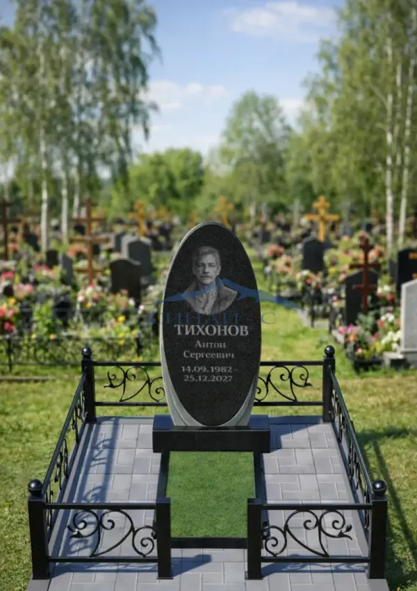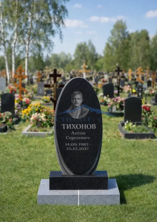 Гранитный памятник «Капля росы» выполнен из высококачественного прочного черного гранита, обеспечивающего долговечность, устойчивость к внешним воздействиям и благородный визуальный эффект. Элегантная овальная форма стелы, напоминающая каплю, символизирует чистоту, светлую память и спокойствие, как утренняя роса на рассвете. Плавные линии и аккуратные контуры создают ощущение гармонии и торжественности, подчеркивая уважение к памяти усопшего. Тщательно отполированная поверхность служит отличной основой для размещения портрета, имен, дат и памятных надписей. Возможна индивидуальная гравировка с именами, датами рождения или другими символами, что делает памятник уникальным проявлением памяти и любви к близкому человеку.