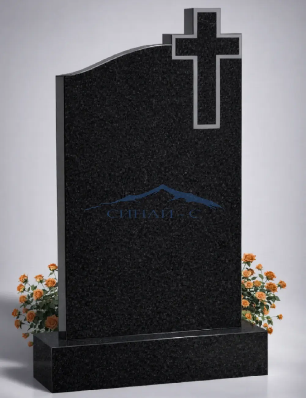 Гранитная стела «Крест и волна» С-44, тумба гранит,
