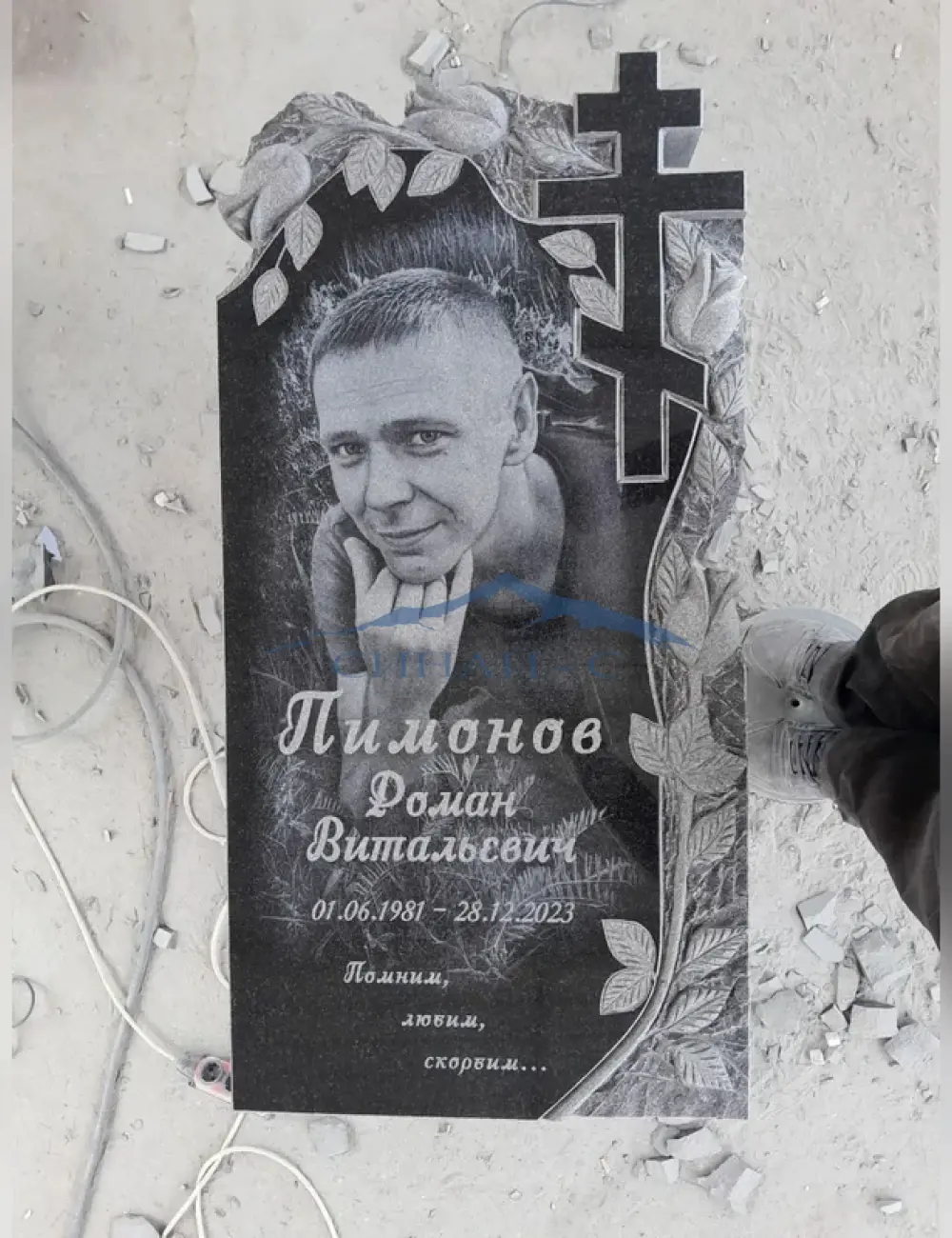 Вертикальная гранитная резная стела