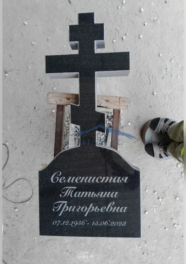 Этот памятник, выполненный из черного гранита, имеет форму с выразительным крестом, который размещен в верхней части. Дизайн памятника выполнен с особым вниманием к деталям, что придает ему элегантность и солидность. Памятник сочетает в себе строгость и духовную значимость, подходящий для увековечения памяти. Он представляет собой символ веры и вечной памяти о человеке. Также на памятнике возможно выполнить гравировку с именем, датами или любыми другими индивидуальными данными для персонализации. Комплект включает в себя гранитную стелу (2-хсторонняя полировка) и гранитный постамент.