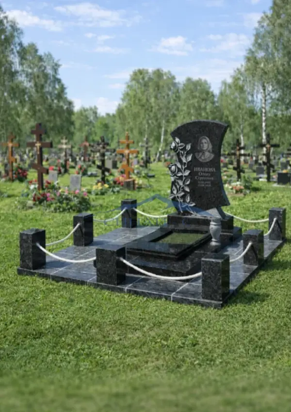 Этот памятник выполнен в современном и элегантном стиле, идеально подходящий для тех, кто желает увековечить память близкого человека с особым чувством изысканности. Сложный и грациозный силуэт композиции подчеркивает плавные линии и декоративный элемент в виде роз, выполненных в контрасте с основным тоном камня. Такой памятник будет выглядеть гармонично и выразительно. Памятник выполнен из качественного черного гранита, что придает ему прочность и долговечность. В его дизайне использованы различные элементы для создания визуальной динамики, которые не только символизируют жизнь, но и сохраняют вечную память о человеке. Комплект включает в себя вертикальную гранитную стелу (полировка со всех сторон) и гранитный постамент.