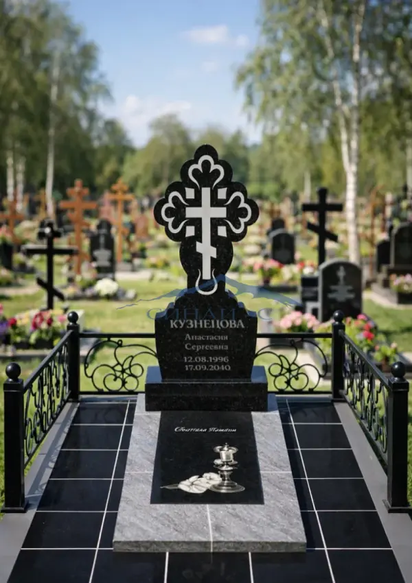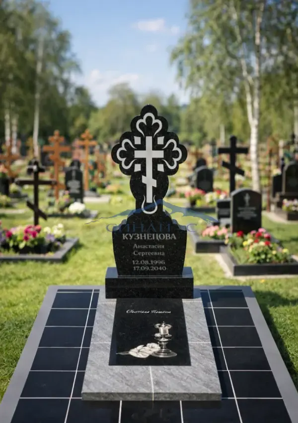 Гранитный памятник «Крест 18» изготовлен из прочного черного гранита высокого качества, обеспечивающего долговечность, стойкость к атмосферным воздействиям и благородный внешний вид. Центральным элементом модели является художественно выполненный православный крест с выразительными декоративными элементами, символизирующий веру, духовную защиту и вечную память о близком человеке. Сдержанная форма стелы с аккуратной полировкой создаёт торжественный и гармоничный образ, подчёркивая уважение и светлую память. Поверхность памятника служит отличной основой для размещения портрета, имён, дат и памятных надписей. Возможна индивидуальная гравировка с именами, датами, эпитафиями или памятными символами, что делает памятник уникальным и отражающим глубокие чувства и память о родном человеке.