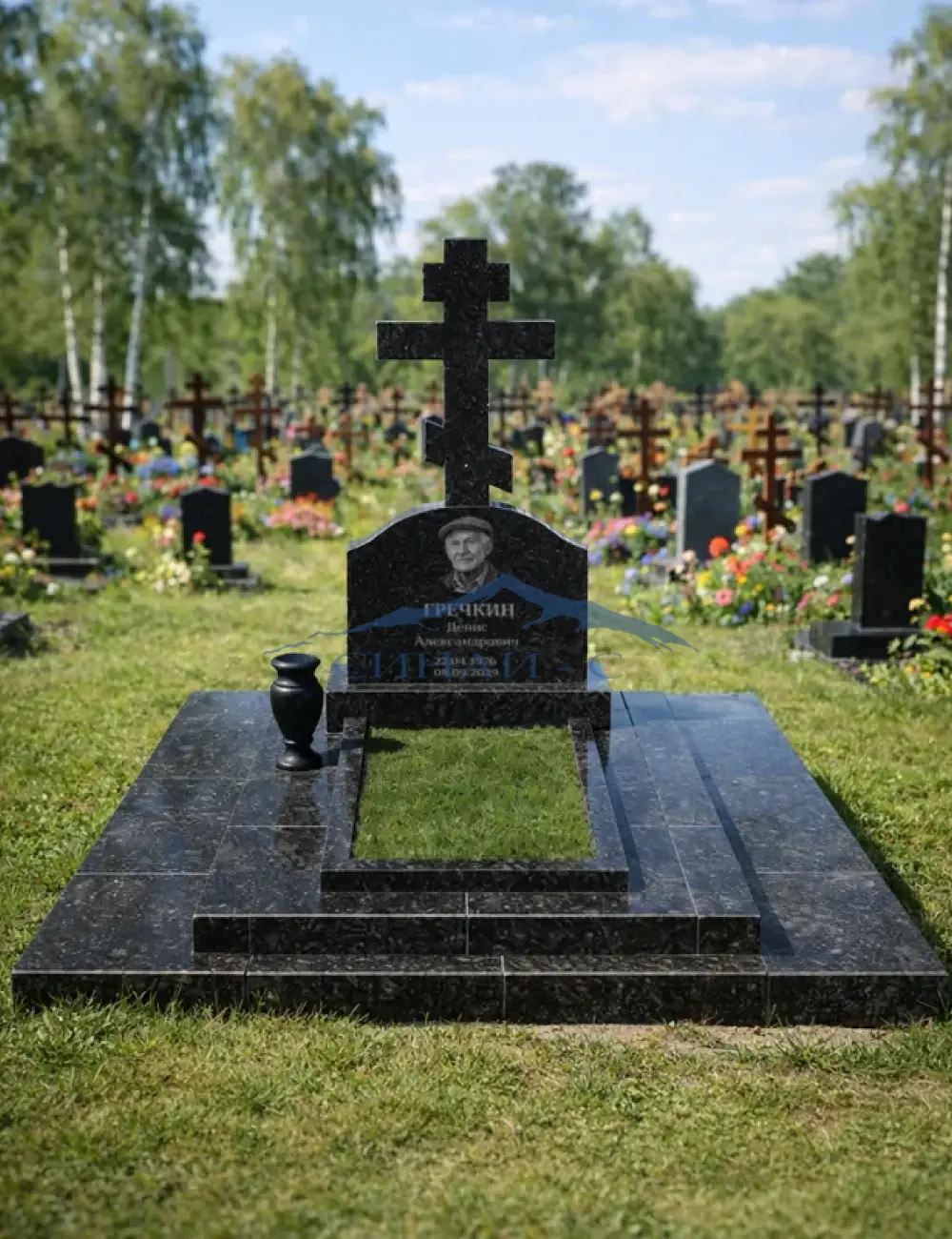 Этот памятник, выполненный из черного гранита, имеет форму с выразительным крестом, который размещен в верхней части. Дизайн памятника выполнен с особым вниманием к деталям, что придает ему элегантность и солидность. Памятник сочетает в себе строгость и духовную значимость, подходящий для увековечения памяти. Он представляет собой символ веры и вечной памяти о человеке. Также на памятнике возможно выполнить гравировку с именем, датами или любыми другими индивидуальными данными для персонализации. Комплект включает в себя гранитную стелу (2-хсторонняя полировка) и гранитный постамент.
