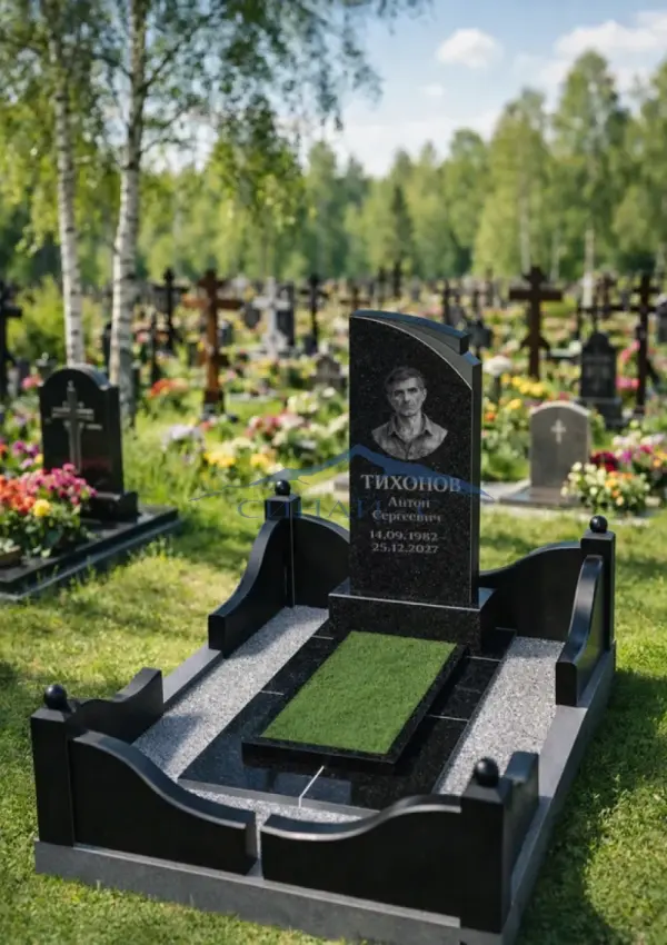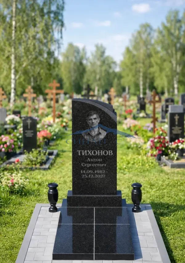 Гранитный памятник «Покой вы обрели» выполнен из прочного высококачественного черного гранита, отличающегося долговечностью и стойкостью к атмосферным воздействиям. Изящный изгиб верхней части стелы создаёт ощущение плавности и гармонии, символизируя спокойствие, умиротворение и светлую память о близком человеке. Полированная поверхность позволяет чётко и изящно разместить портрет, имена, даты и памятные надписи, подчёркивая уважение и глубокие чувства. Лаконичный и сдержанный дизайн делает памятник универсальным для установки на одиночных или семейных захоронениях, а его эстетическая простота усиливает торжественность образа. Возможна индивидуальная гравировка с именами, датами или памятными символами, что делает изделие уникальным отражением любви, благодарности и памяти о родном человеке.