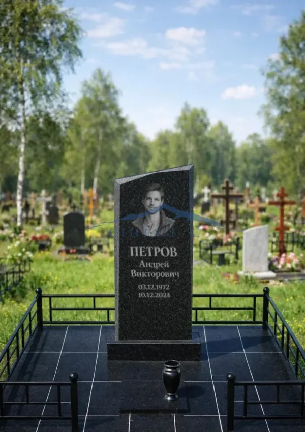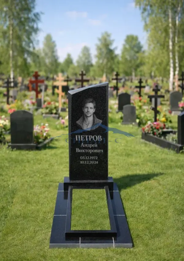 Гранитный памятник «Утренняя заря» выполнен из прочного черного гранита высокого качества, обеспечивающего долговечность, стойкость к внешним воздействиям и благородный визуальный эффект. Элегантная, слегка наклонённая форма стелы напоминает восходящий свет, символизируя начало вечной памяти и светлую связь с усопшим. Чёткие, аккуратно отполированные грани подчёркивают благородство материала и придают памятнику выразительность и торжественность. Лаконичный дизайн подходит для установки как на одиночных, так и семейных участках, а универсальная поверхность позволяет разместить портрет, имена, даты и памятные надписи. Возможна индивидуальная гравировка с именами, датами рождения и другими символами, что делает памятник персональным выражением памяти и уважения к родному человеку.