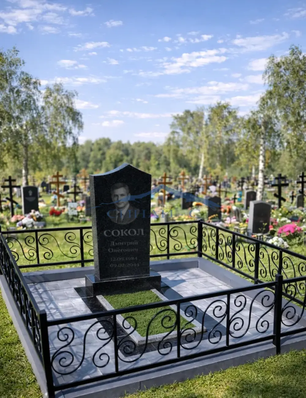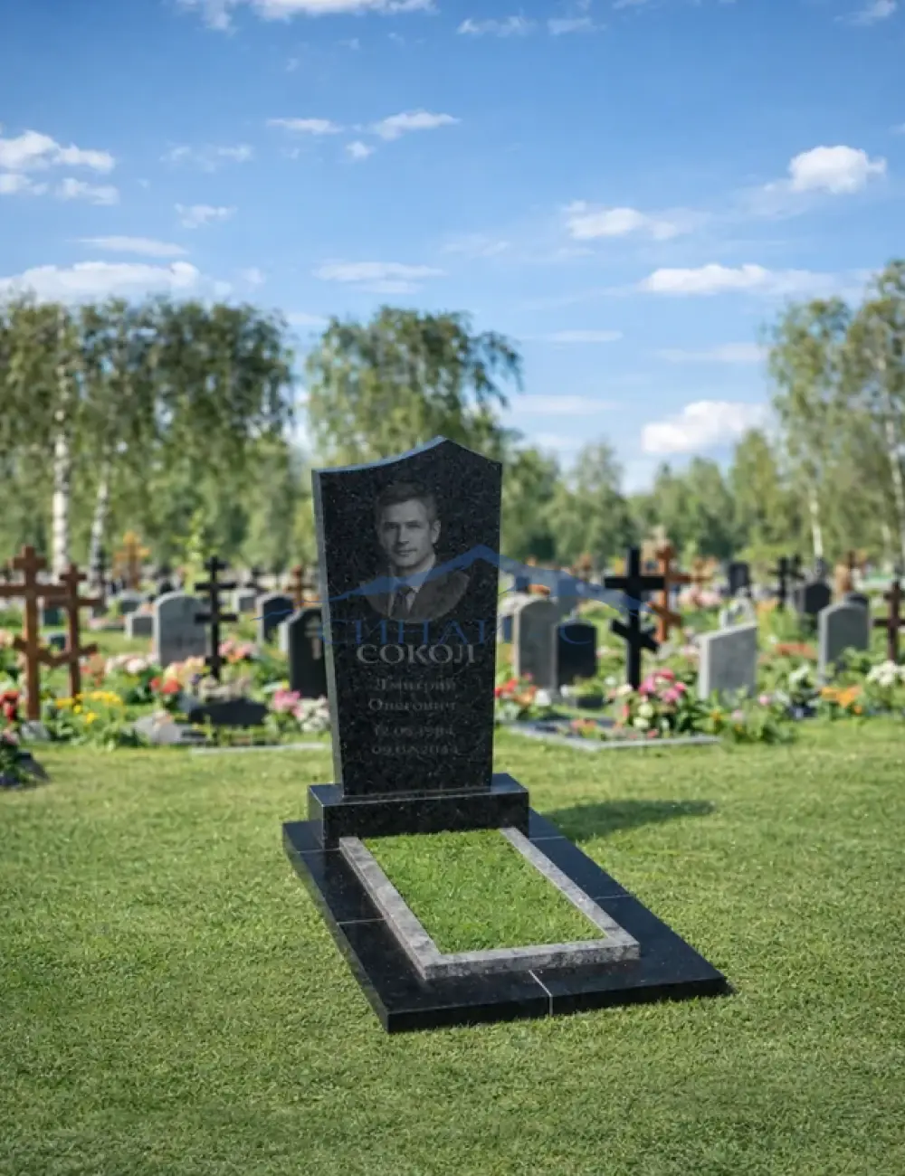 Памятник "Парус" – это элегантный и стильный памятник, который отличается современным и в то же время строгим дизайном. Изогнутые линии на верхней части памятника напоминают парус, развевающийся на ветру, что символизирует вечный путь, бесконечную свободу и движение вперед.