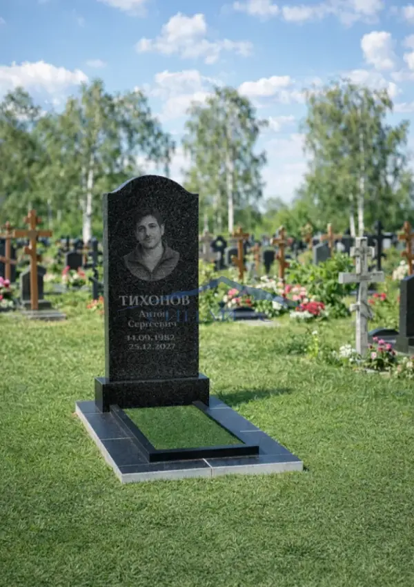 Этот памятник, выполненный из прочного черного гранита, сочетает строгие, но элегантные линии, подчеркивая достоинство и уважение. Стела с плавно изогнутым верхом придает ей утонченность, а простота формы делает ее универсальной для любых памятных надписей. Памятник можно персонализировать, добавив на нем индивидуальные гравировки, что позволяет отдать дань памяти с особой душевной теплотой.