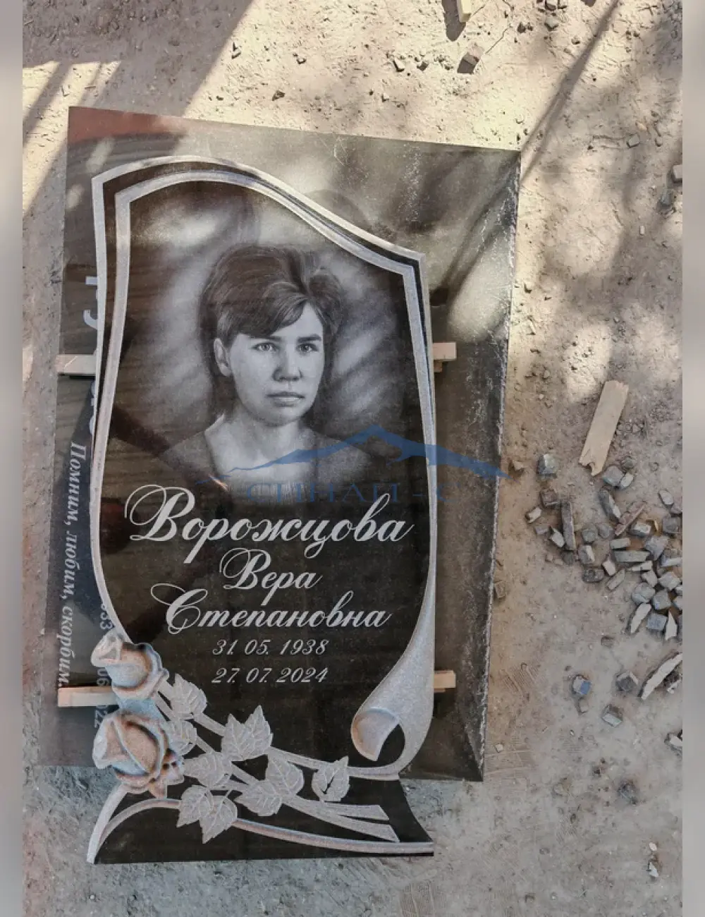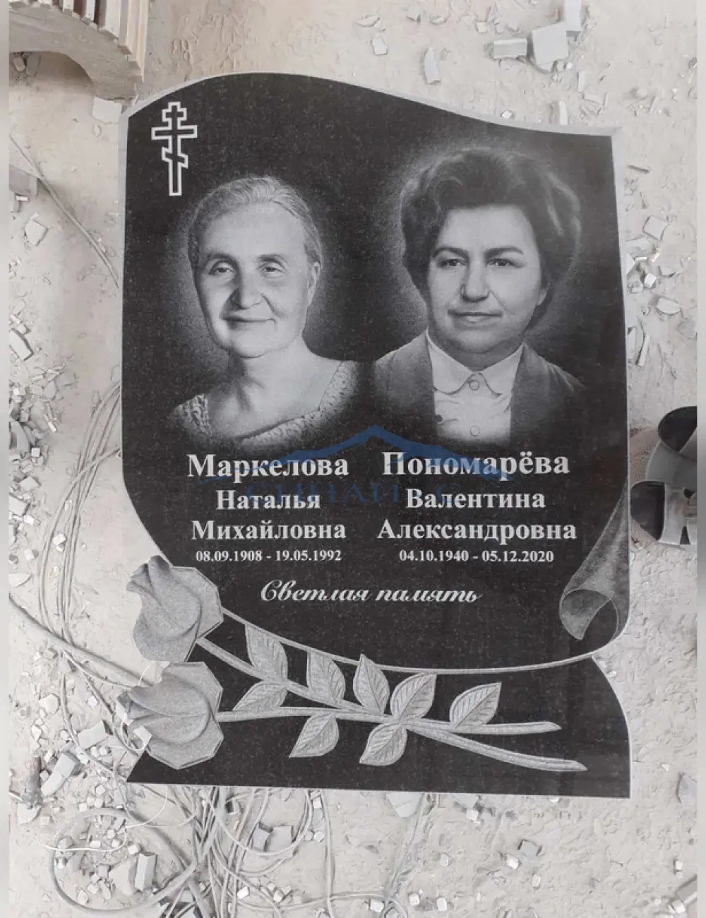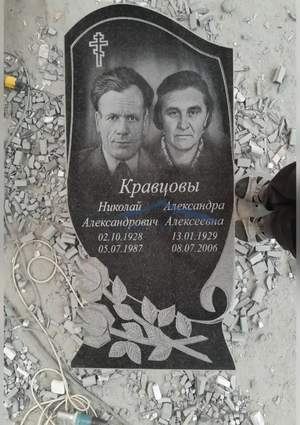 Гранитный памятник с изображением роз и волны — это стильный и элегантный символ памяти, выполненный из прочного черного гранита. Изящные розы, обвивающие основание памятника, искусно вырезаны с высокой детализацией, отражая глубину чувства и уважения. Плавная линия волны на верхней части памятника символизирует непрерывность времени и спокойствие. Этот памятник сочетает в себе гармонию природы и утонченность, создавая спокойную атмосферу в месте памяти.