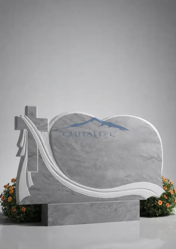 Мраморный горизонтальный памятник с крестом и драпировкой выполнен из натурального светлого мрамора, придающего изделию благородный и выразительный вид. Плавная асимметричная форма стелы дополнена изящной драпировкой, символизирующей скорбь и память о близком человеке. Православный крест подчеркивает веру, духовную защиту и надежду на вечную жизнь. Мягкие линии и гармоничная композиция создают спокойный и светлый образ, отражающий уважение и любовь к ушедшему. Такой памятник отличается современным дизайном и эстетической выразительностью. Возможна гравировка имен, дат или изображений, что позволяет создать индивидуальный мемориальный знак.