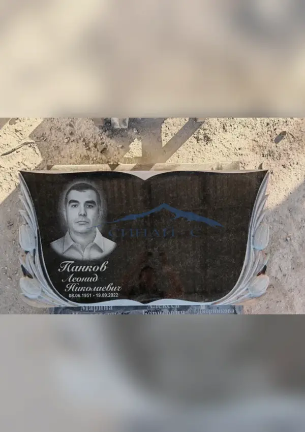Комплект включает в себя горизонтальную гранитную стелу (2-хсторонняя полировка) с резьбой по камню и гравировкой креста, и гранитный постамент.