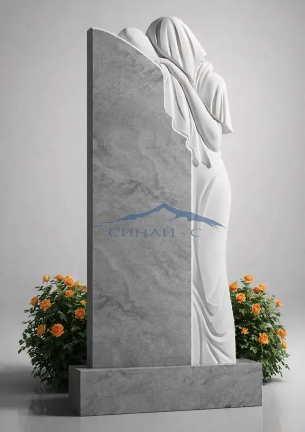 Мраморный памятник с фигурой скорбящей женщины выполнен из натурального светлого мрамора, придающего изделию благородный и выразительный вид. Скульптурное изображение женщины, склонившейся в печали, символизирует глубокую скорбь, любовь и вечную память о близком человеке. Плавные линии стелы гармонично сочетаются с объемной фигурой, создавая эмоционально насыщенную и трогательную композицию. Художественная резьба и детализированная драпировка подчеркивают утонченность исполнения. Такой памятник передает искренние чувства утраты и уважения. Возможна гравировка имен, дат или изображений для создания индивидуального мемориального оформления.