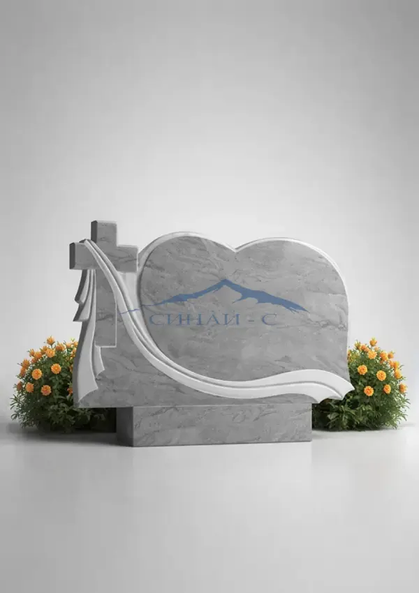 Мраморный горизонтальный памятник с крестом и драпировкой выполнен из натурального светлого мрамора, придающего изделию благородный и выразительный вид. Плавная асимметричная форма стелы дополнена изящной драпировкой, символизирующей скорбь и память о близком человеке. Православный крест подчеркивает веру, духовную защиту и надежду на вечную жизнь. Мягкие линии и гармоничная композиция создают спокойный и светлый образ, отражающий уважение и любовь к ушедшему. Такой памятник отличается современным дизайном и эстетической выразительностью. Возможна гравировка имен, дат или изображений, что позволяет создать индивидуальный мемориальный знак.