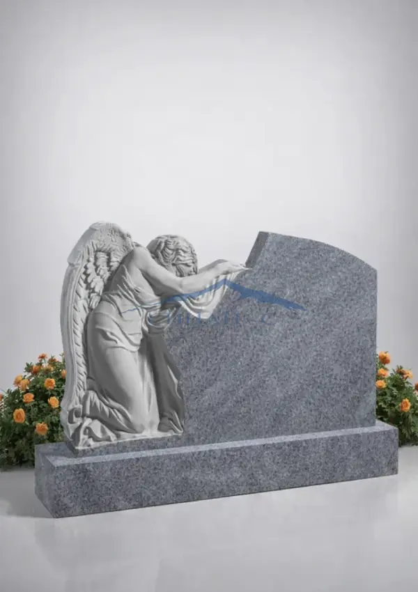 Мраморный памятник "Присный" с ангелом выполнен из светлого натурального мрамора и отличается выразительной горизонтальной композицией. Скульптура скорбящего ангела, склонившего голову на стелу, символизирует вечный покой, защиту души и светлую память о близком человеке. Детальная проработка крыльев, фигуры и складок одежды придаёт памятнику глубину и эмоциональную выразительность. Плавная форма стелы гармонично дополняет композицию, создавая спокойный и благородный образ. Поверхность памятника подходит для нанесения гравировки с именами и датами, позволяя создать индивидуальный мемориал. Такой памятник станет достойным символом уважения и памяти на долгие годы.