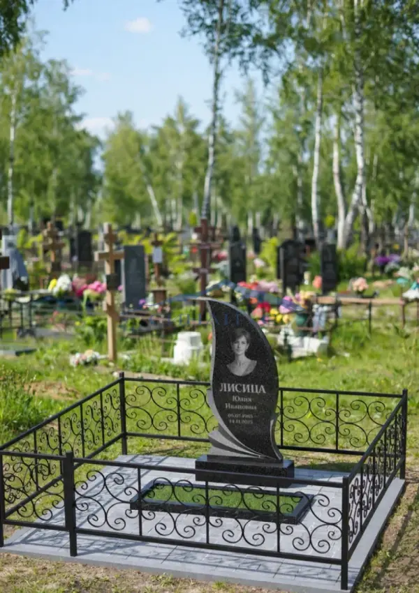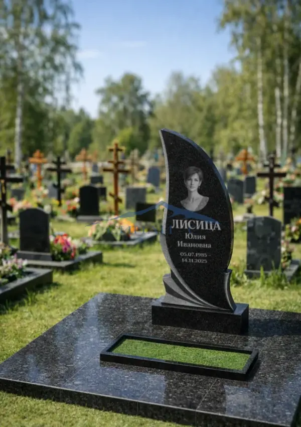 Гранитный памятник «Мир и покой» изготовлен из высококачественного прочного черного гранита, обеспечивающего долговечность, стойкость к атмосферным воздействиям и благородный внешний вид. Утончённая форма стелы с мягкими изгибами символизирует гармонию, спокойствие и память о светлой душе, оставившей след в сердцах близких. Плавные линии памятника создают чувство умиротворения и торжественности, а тщательно отполированная поверхность служит идеальной основой для нанесения портрета, имён, дат и памятных надписей. Лаконичный дизайн делает модель универсальной для установки как на одиночном, так и семейном участке. Возможна индивидуальная гравировка с именами, датами рождения и другими памятными символами, что превращает памятник в уникальное выражение любви, уважения и вечного покоя.