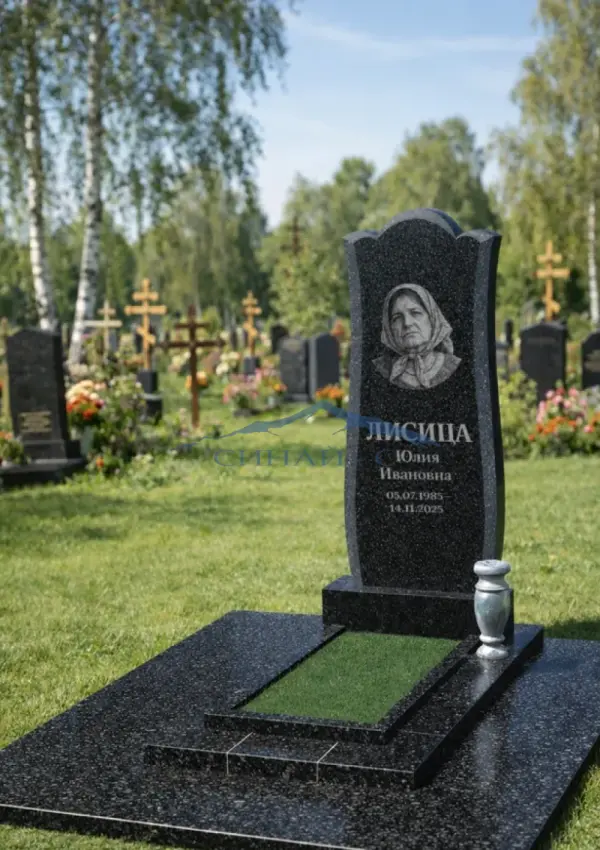 Гранитный памятник «Не хочется верить» выполнен из прочного черного гранита высокого качества, который отличается долговечностью, устойчивостью к атмосферным воздействиям и благородной природной текстурой. Стела имеет выразительную фигурную форму с плавными боковыми линиями и изящной арочной верхней частью, что придаёт памятнику мягкость и гармонию. Такой дизайн символизирует глубокую скорбь, светлую память и искренние чувства близких людей. Полированная поверхность гранита идеально подходит для нанесения портрета, имён, дат и памятных надписей, позволяя сохранить память о дорогом человеке на долгие годы. Памятник гармонично смотрится как на одиночном захоронении, так и в составе мемориального комплекса. Возможна индивидуальная гравировка, добавление символов или эпитафий, что делает изделие уникальным отражением любви, уважения и вечной памяти.