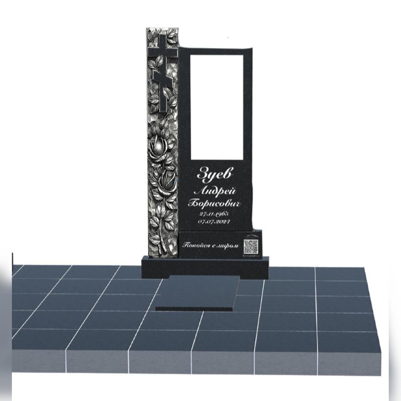 - Гранитный памятник "ФР-785" с окрашиваием в серебрянную патину. Тумба из гранита,